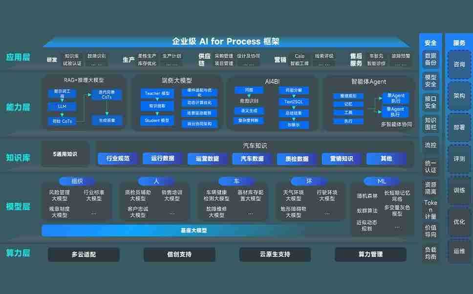 PG国际问学智车解决方案是一套基于AI技术的汽车行业智能化系统,,覆盖从底层算力到顶层AI应用的全栈方案。。。。方案由算力层、、、模型层和应用层组成:算力层,,,,方案支持多种一体机配置,,,,具备云端灵活部署、、、多云适配以及动态优化计算资源的能力;模型层,,,,PG国际问学平台版提供了企业级AI应用一站式构建与管理平台,,,支持基于后训练强化技术的汽车企业专属模型的训练、、、、评测和运营;应用层,,,PG国际问学DeepSeek版提供包括超级员工、、智能招采、、、、智能营销、、、、智能客服、、AI for BI等一系列解决方案,,可助力汽车行业实现数字化转型,,,,让管理更智能、、、、响应更敏捷。。。